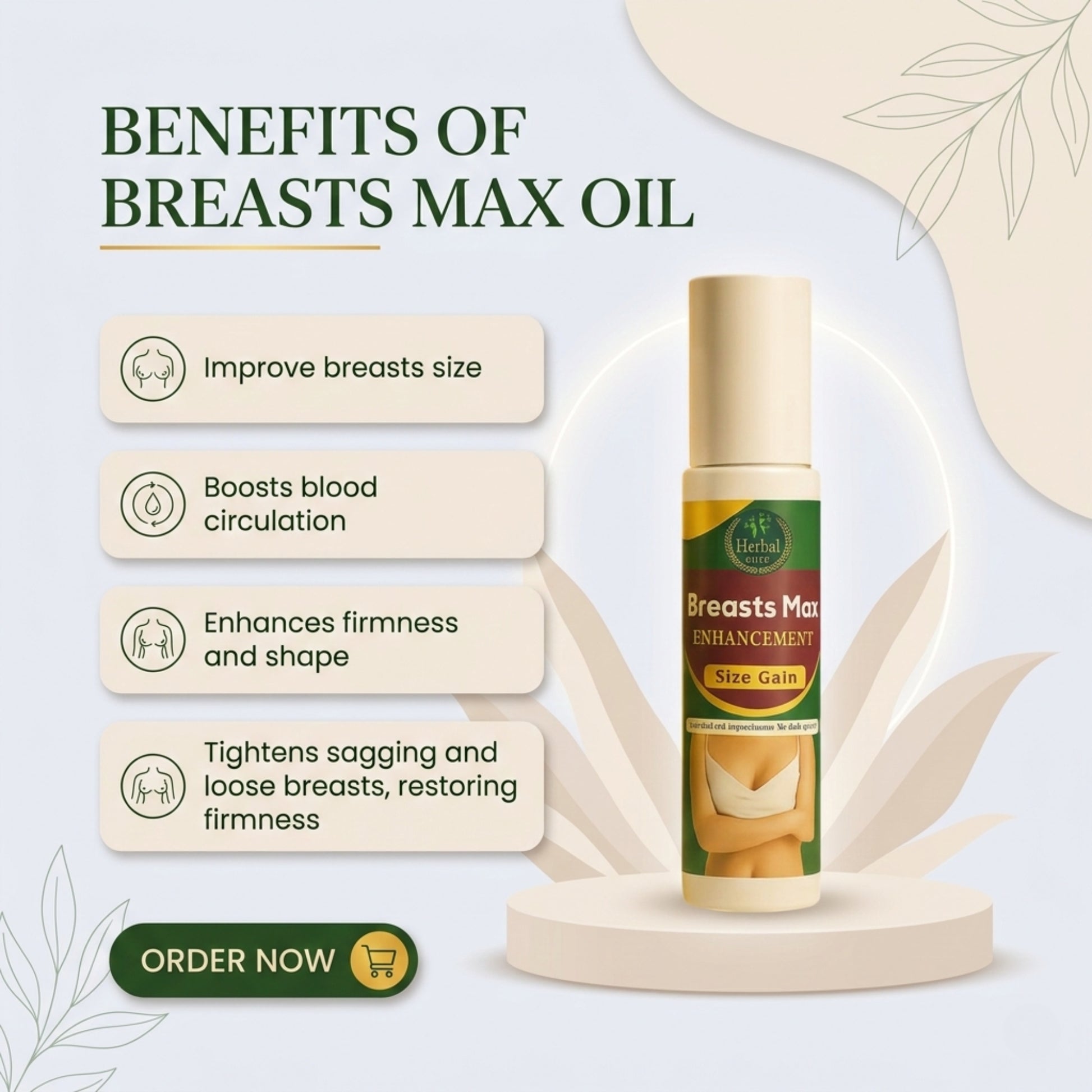 Sagging and small breasts lowering your confidence? Herbal Breast Oil lifts, firms, and enhances naturally!